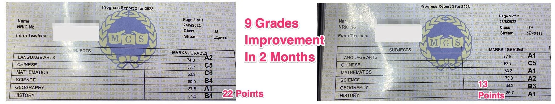 Moreover, she has become more organized in her learning approach by planning her study schedule, resulting in these remarkable grade improvements and a better overall study experience.